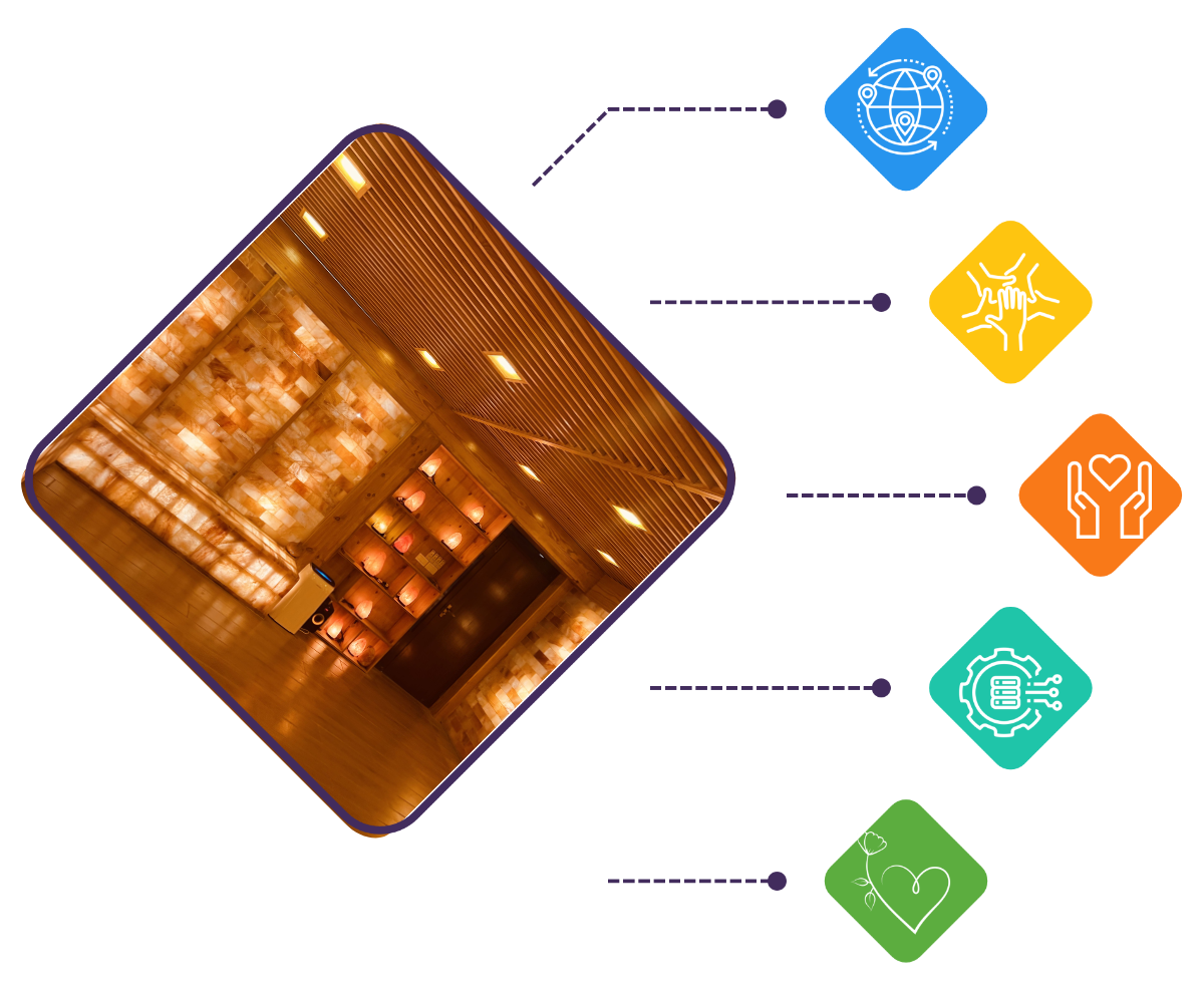 By creating unique, state-of-the-art man-made microclimates, we harness the raw beauty and healing powers found in salt.